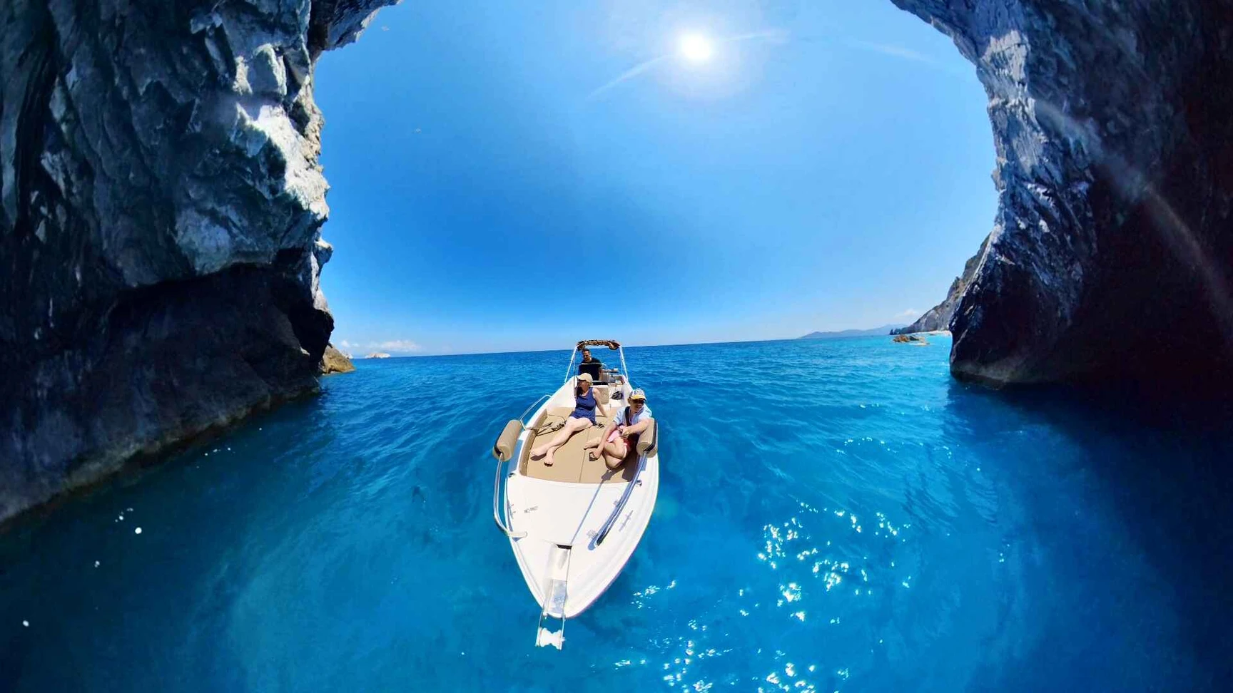 Experience the wild beauty of Skiathos’ northern coastline. This trip takes you inside the famous Dark Cave (known as the Cave of the Murderess) and the luminous Blue Cave by boat. You will also visit the iconic Lalaria Beach, famous for its smooth white stones and “Tripia Petra” arch, as well as the historic Kastro beach. It is a journey through centuries of natural sculpture and emerald waters, white colour smooth stones, caves with a long enter and private beaches with green blue crystal waters.