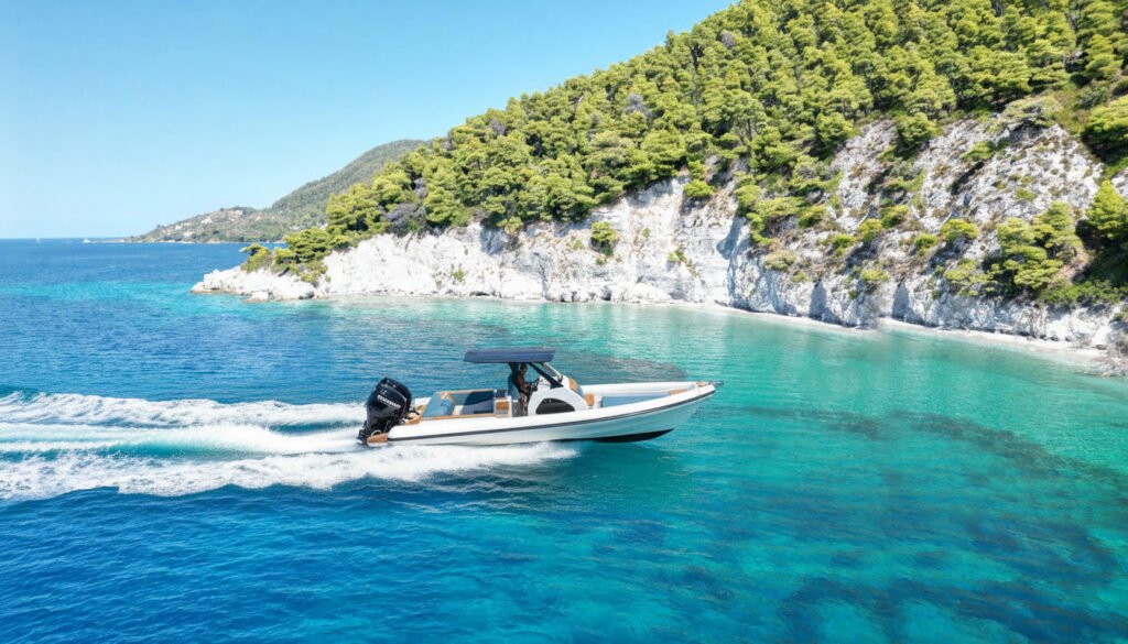 Rent a private boat trip and enjoy the sunset over the picturesque Skiathos landscape with our premium boat, rib boat...